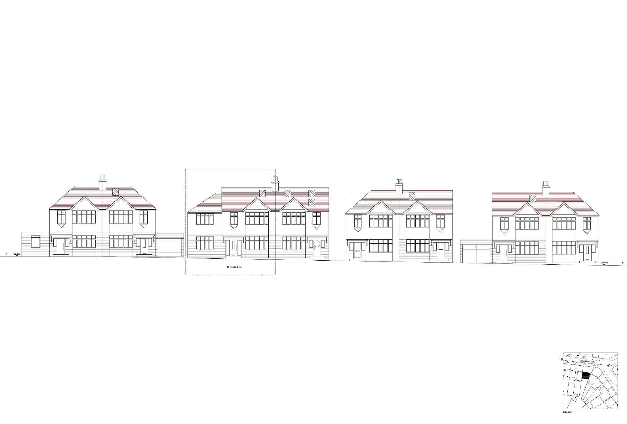 Side Extension Planning Permission Application support, including Site plan, Block plan, Ground floor plan, Elevation and Section drawings